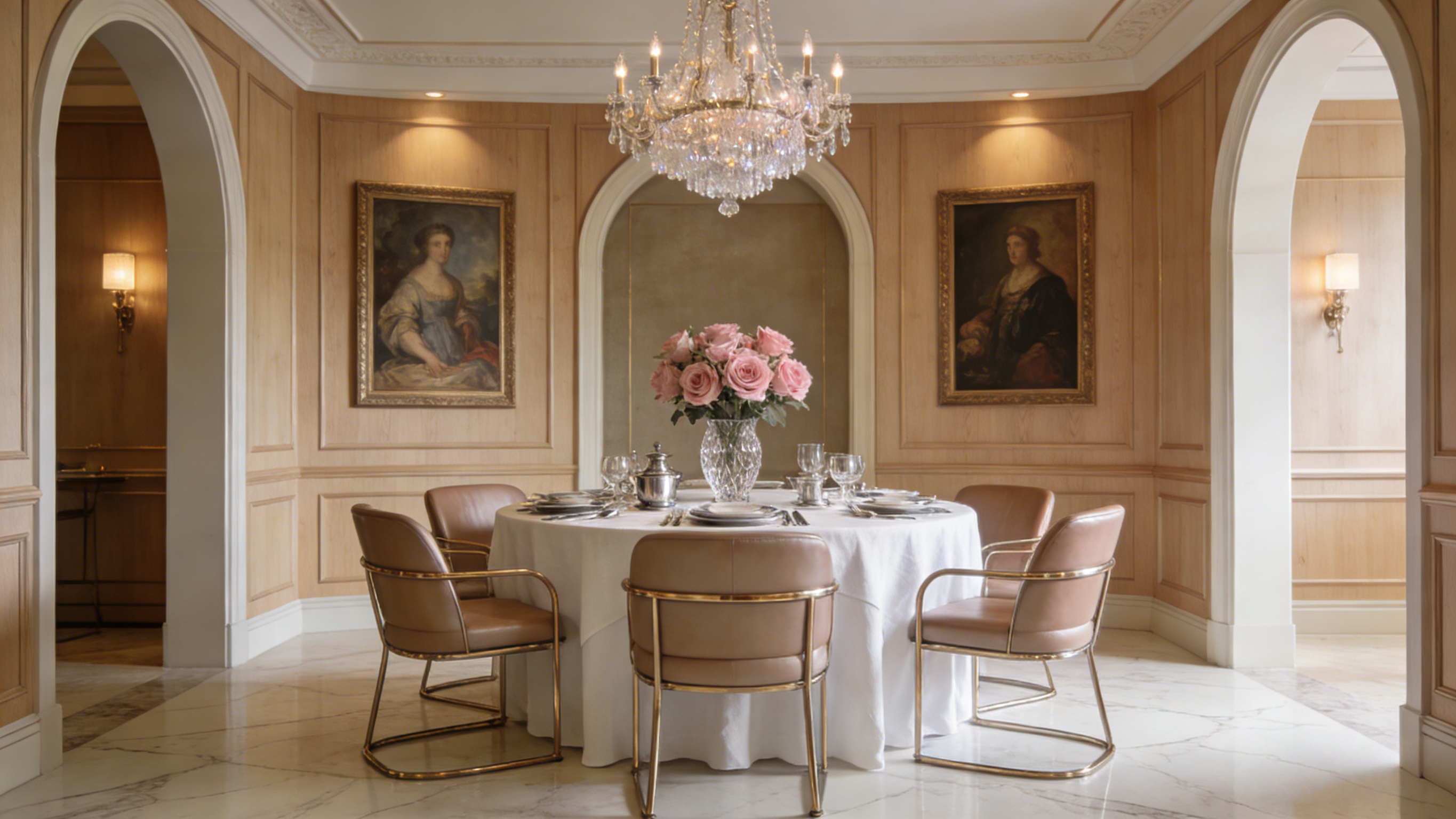 Buffet en bois avec détails en marbre et pieds métalliques dorés