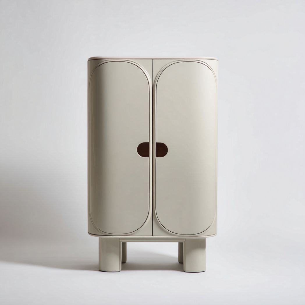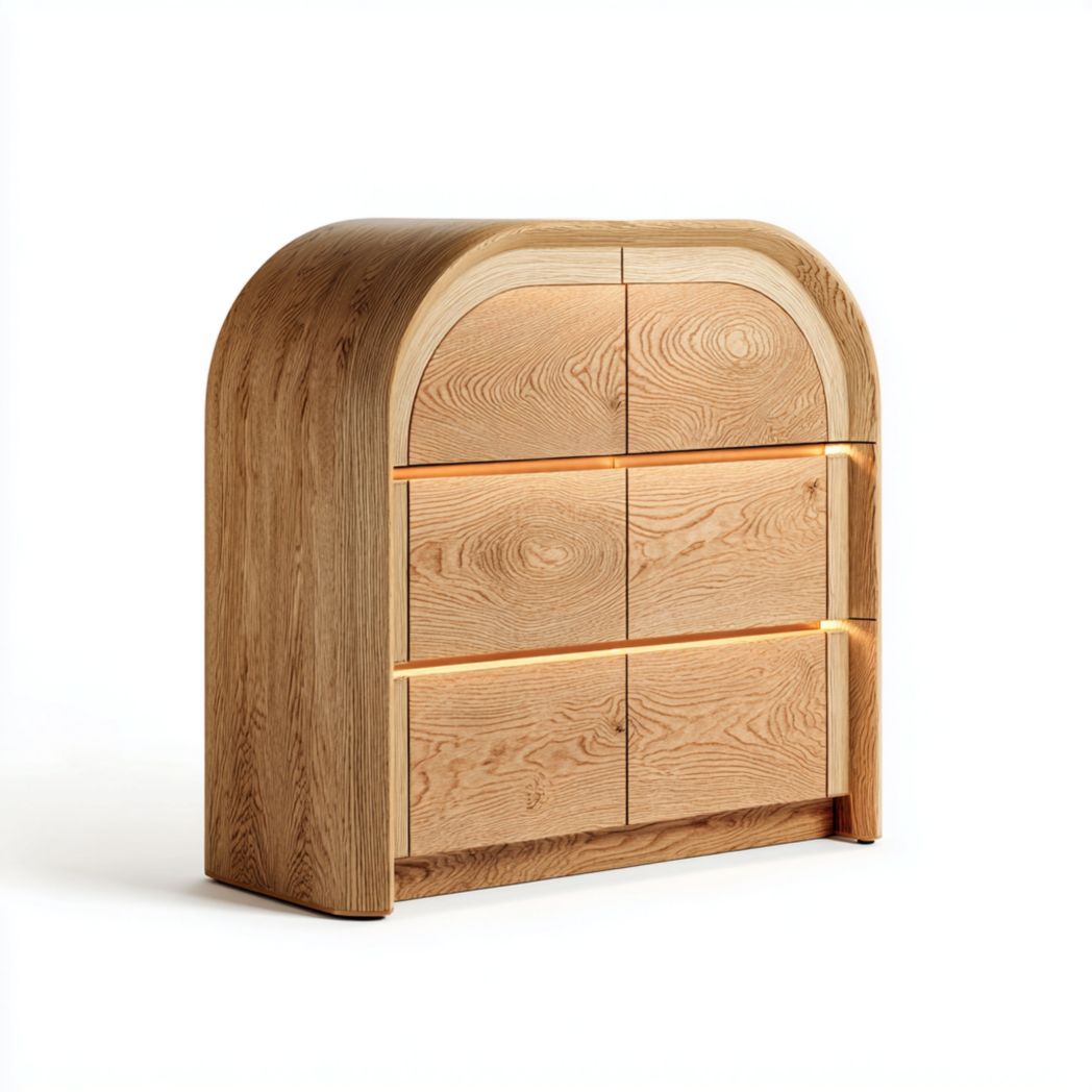 Commode en chêne massif avec éclairage LED intégré et tiroirs arrondis