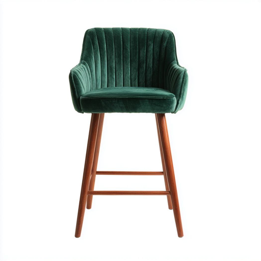 Chaise de bar en tissu vert avec pieds en bois
