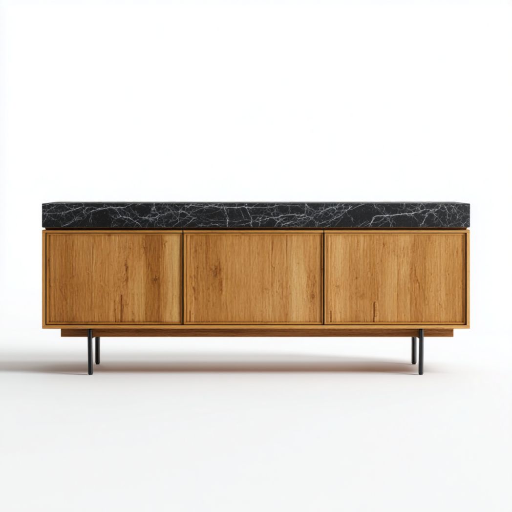 Matériau : Chêne massif, marbre noir, métal